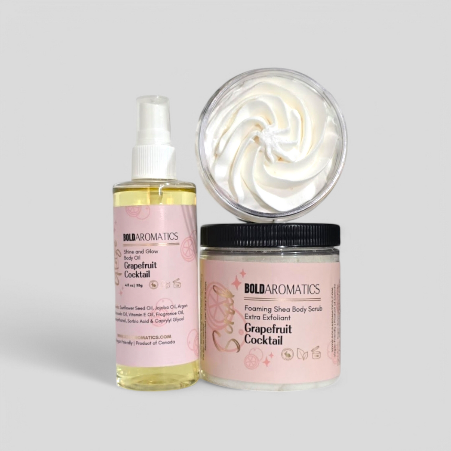 Complete the routine with our body Glaze for that final touch. Indulge in a nourishing blend of oils that effortlessly penetrates the skin. Lightweight and fragrant, enjoy a lasting aroma while satisfying your skin's needs, at home, or on the go. our formula is light weight, and fast absorbing.